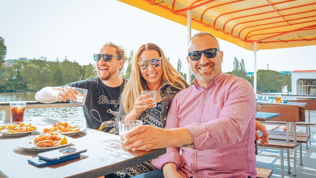 Vychutnejte si čerstvě servírované tříchodové menu s několika možnostmi výběru, včetně vegetariánské varianty. Užijte si profesionální servis a příjemné prostředí na palubě, které je ideální pro páry, rodiny a přátele, kteří chtějí spojit gurmánský oběd s prohlídkou centra Prahy.